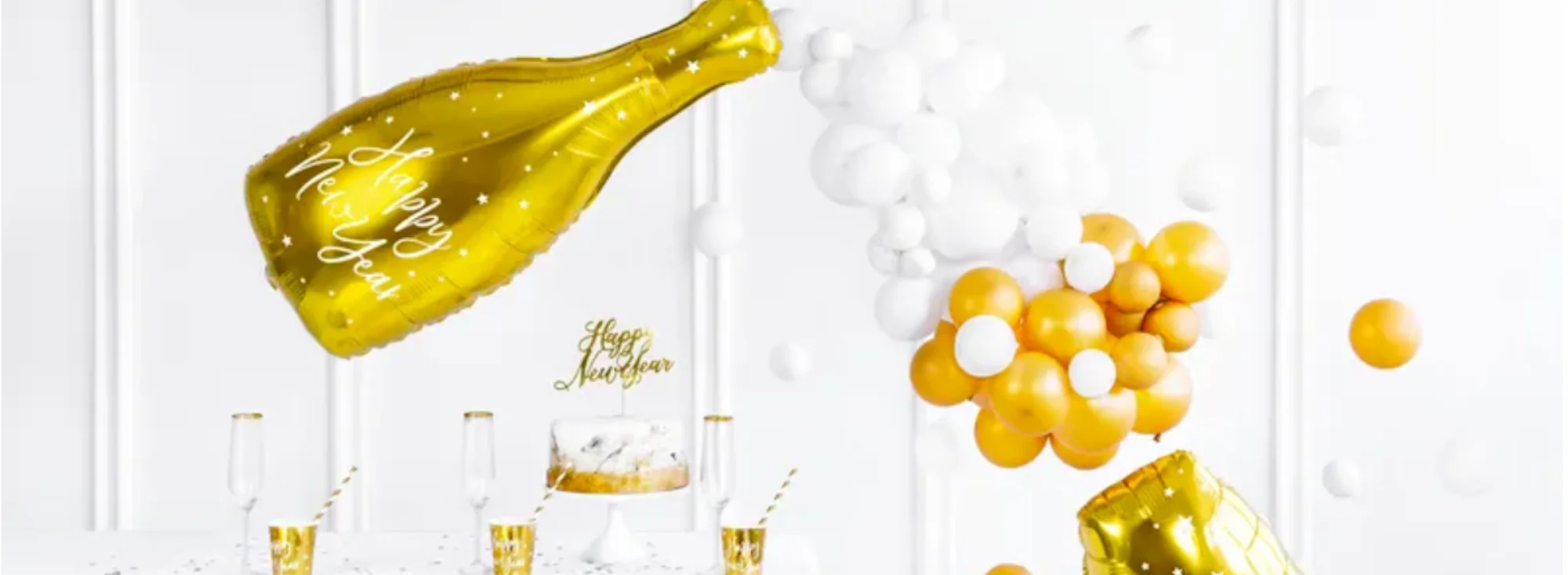 Große goldene Sektflasche als Folienballon für die Neujahrsfeier!