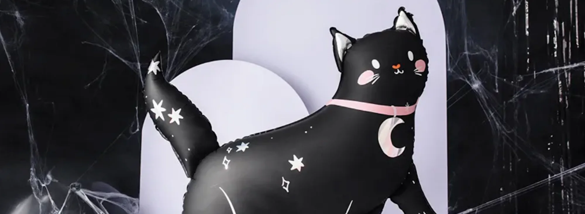 Süße schwarze Katze mit Sternenhimmel als Folienballon.