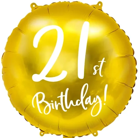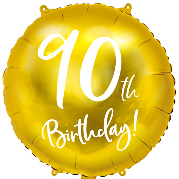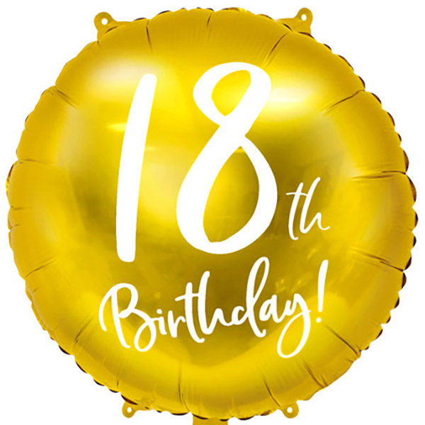 18th bis 90th Birthday, Folienballon, rund, gold mit weißer Schrift, 45cm