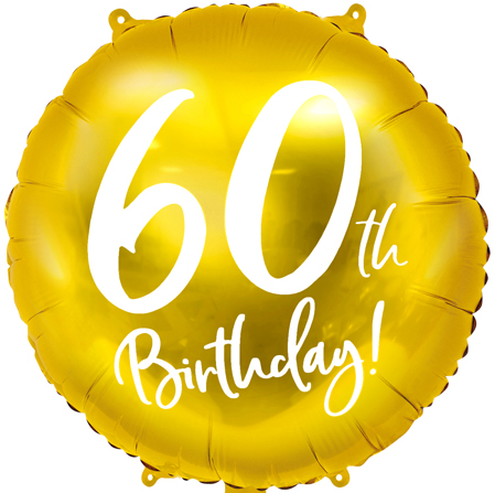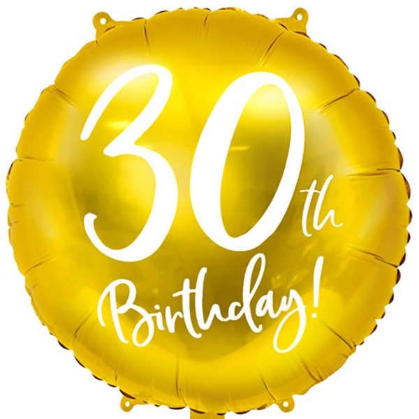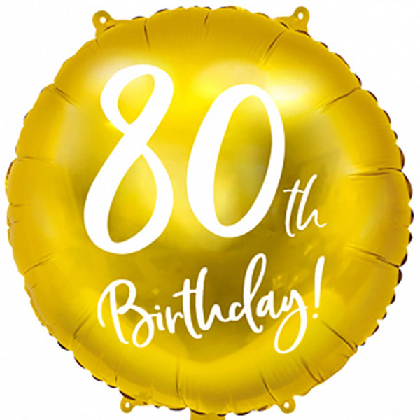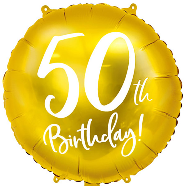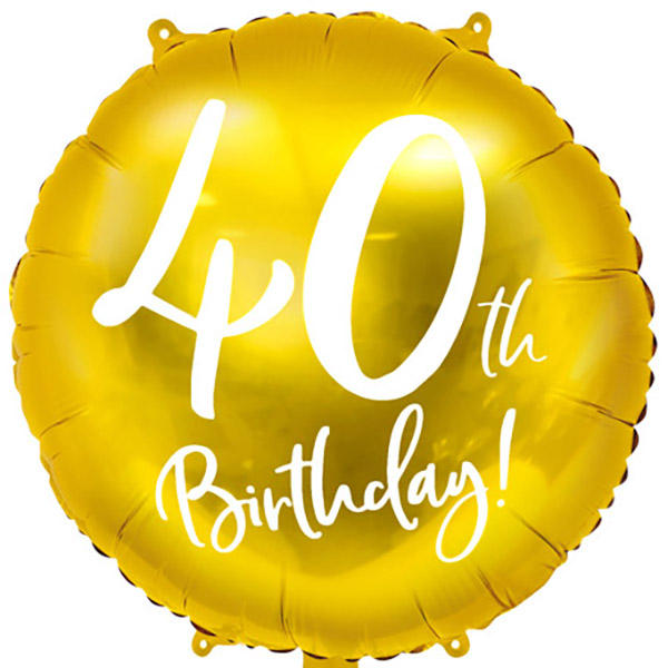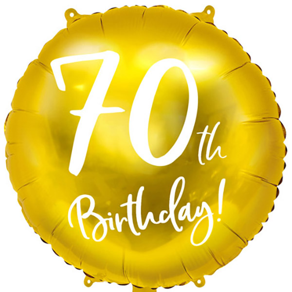 Schöner runder Folienballon in gold mit weißer Schrift und Gratulation vom 18ten bis 90ten runden Geburtstag!