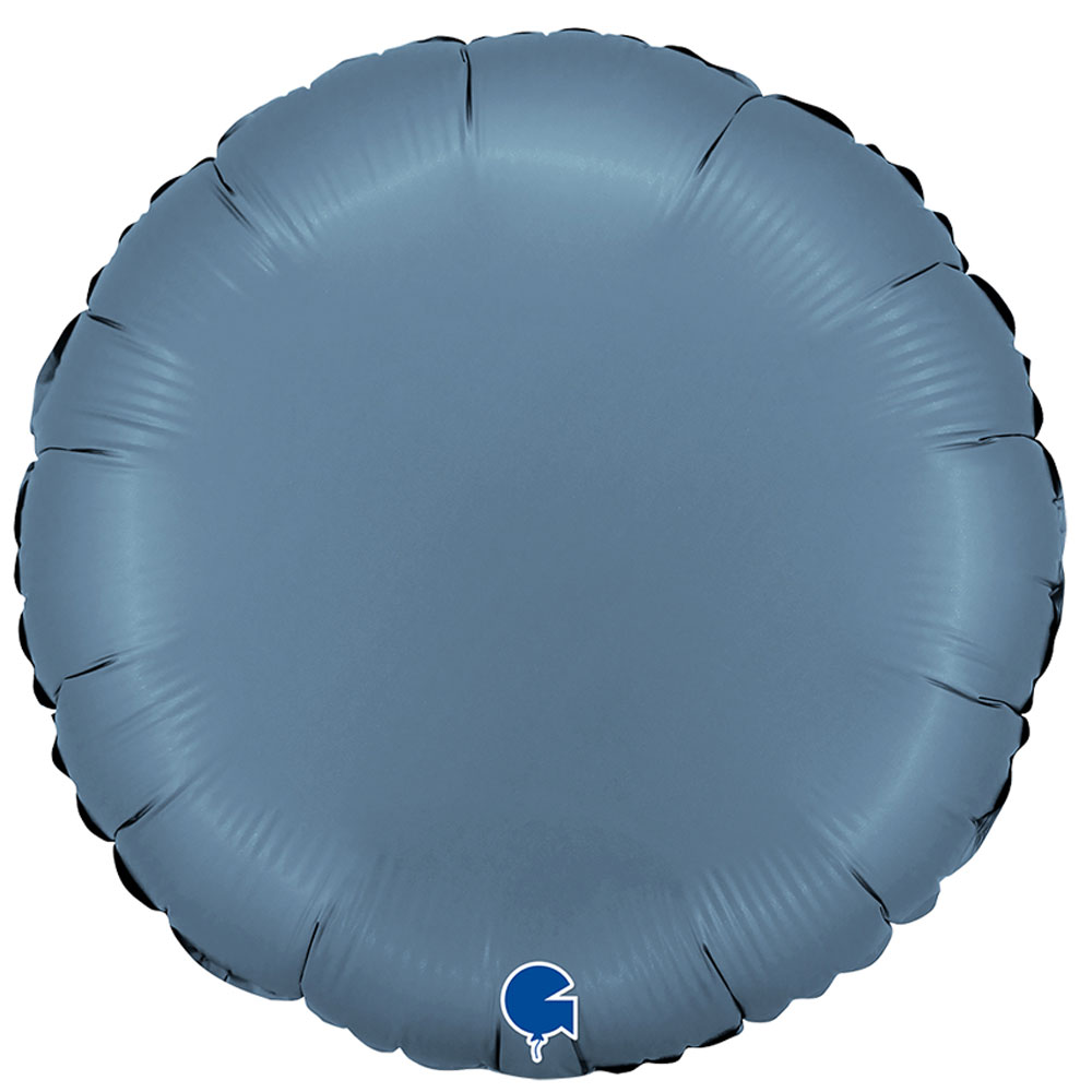 Schöner runder Folienballon in blau-grau mit Satineffekt.