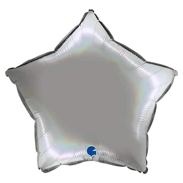 Schöner sternförmiger Folienballon mit irisierender Oberfläche in der Farbe Silber.