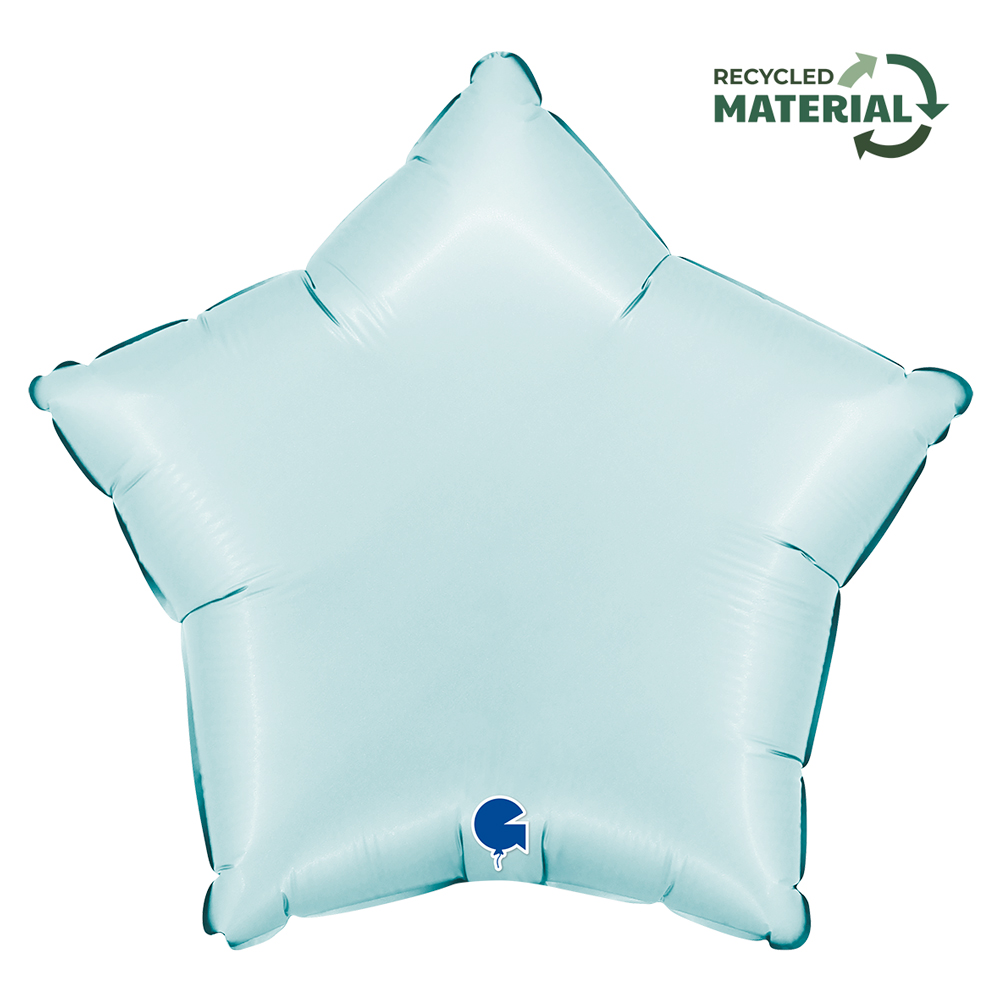 Schöner sternförmiger Folienballon mit satinierter Oberfläche in der Farbe hellblau.