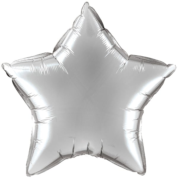 Großer silberner Folienballon in Sternform.