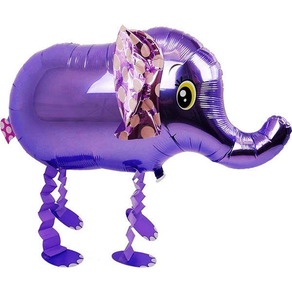 Niedlicher lila Elefant mit bunten Ohren als Airwalker/Folienballon.