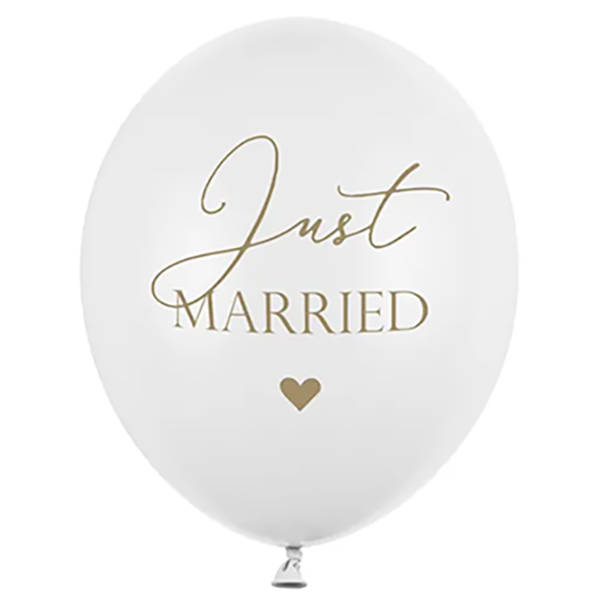 Weißer Latexballon mit „Just married“ Aufdruck.