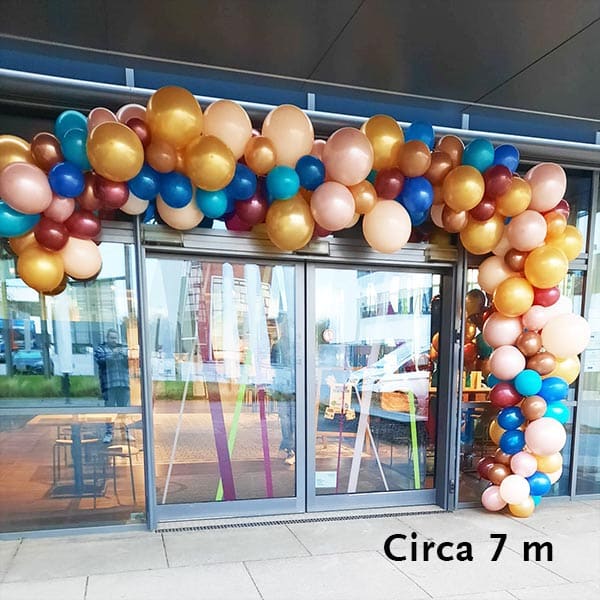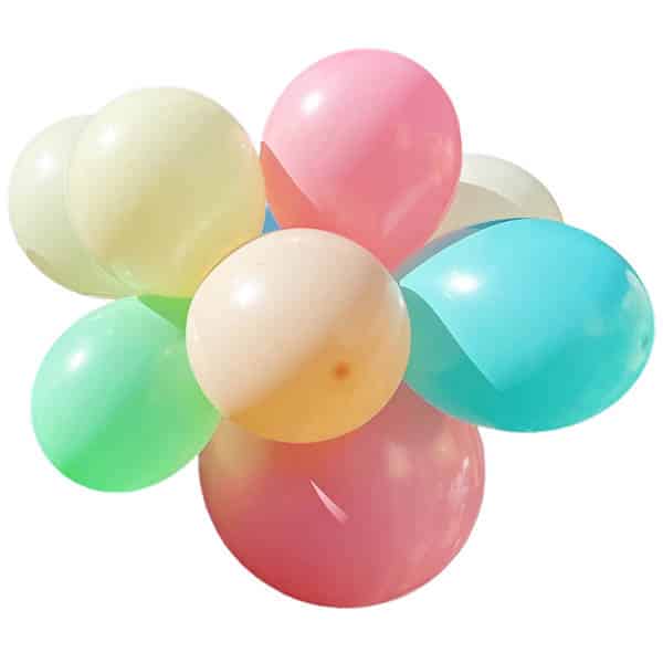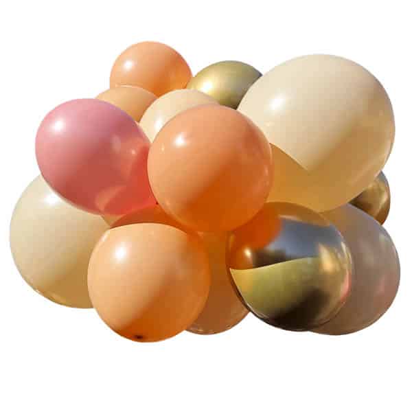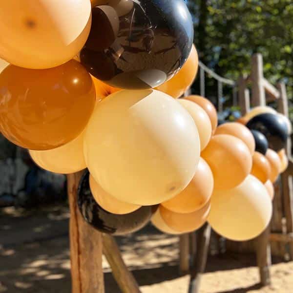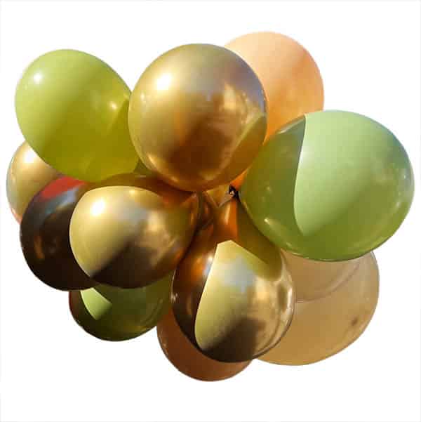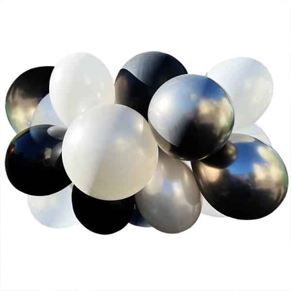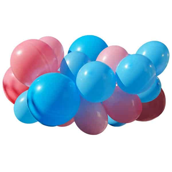 Die Ballongirlande besteht aus luftbefüllten Latexballons in den gemischten Größen 13cm, 28cm bis 42cm und einer Ballonschnur die ihr zur Befestigung nutzen könnt.
