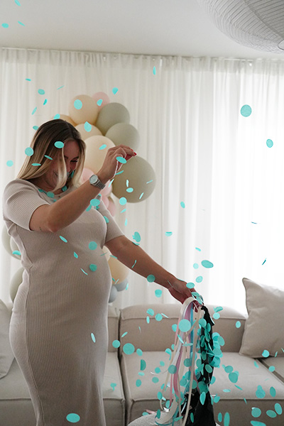 Einfach mit einer Nadel zum Platzen bringen und das farbige Konfetti enthüllt auf spektakuläre Weise das Geschlecht des Babys.