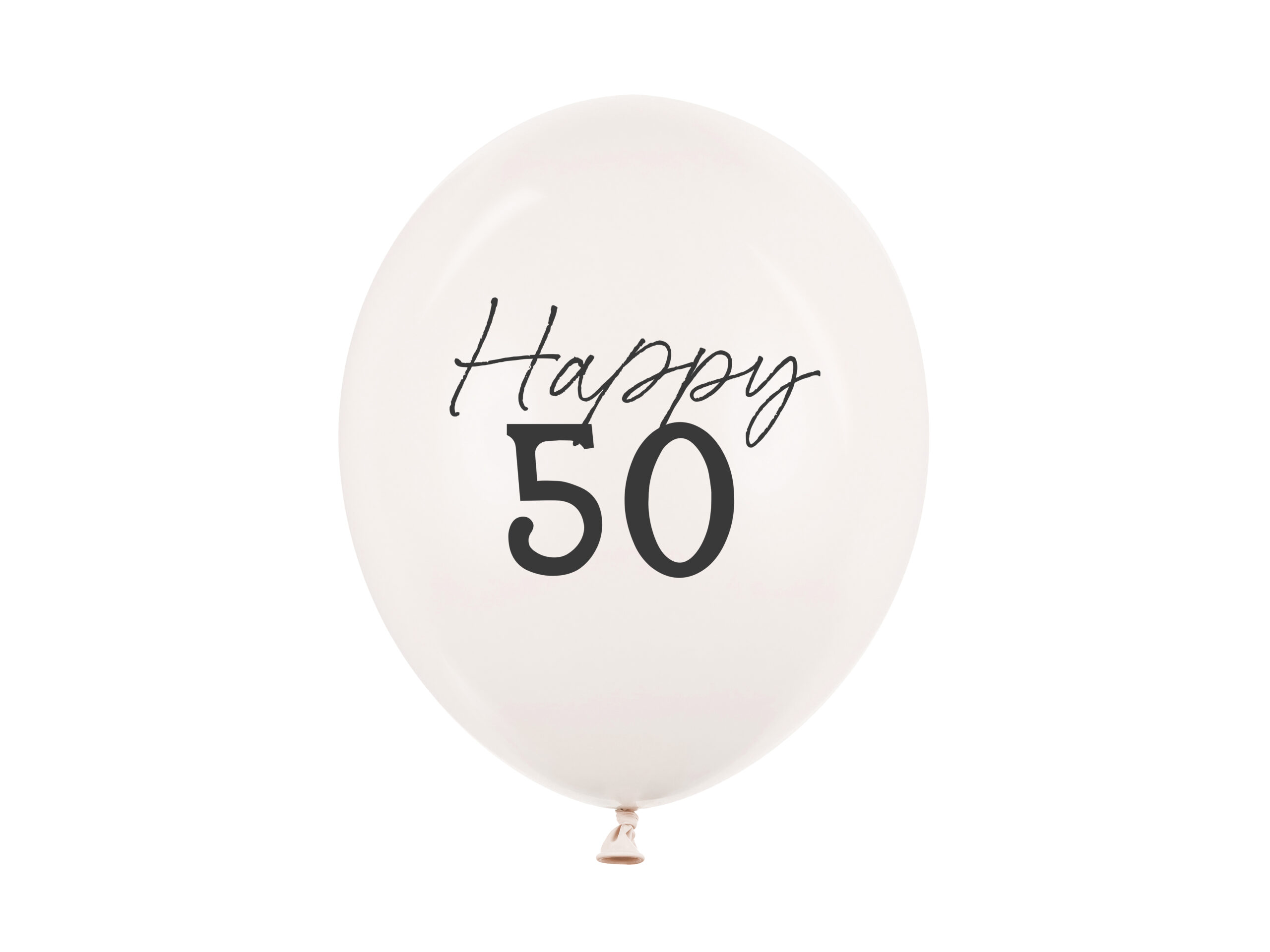 Happy 50, Latexballon weiß mit Aufdruck 28 cm