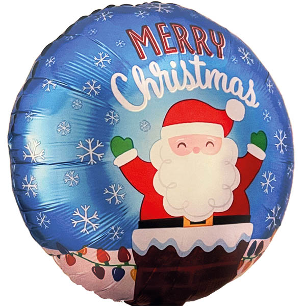 Wunderschöner runder Folienballon mit fröhlichem Weihnachtsmann im Schornstein.