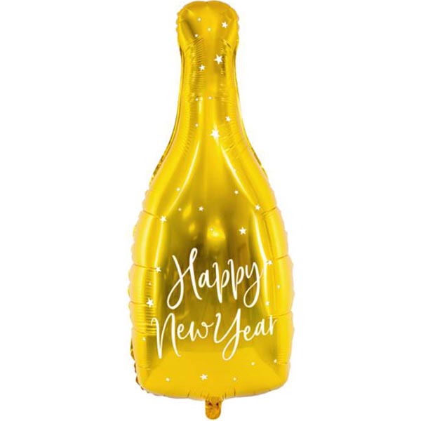 Große goldene Sektflasche als Folienballon für die Neujahrsfeier!